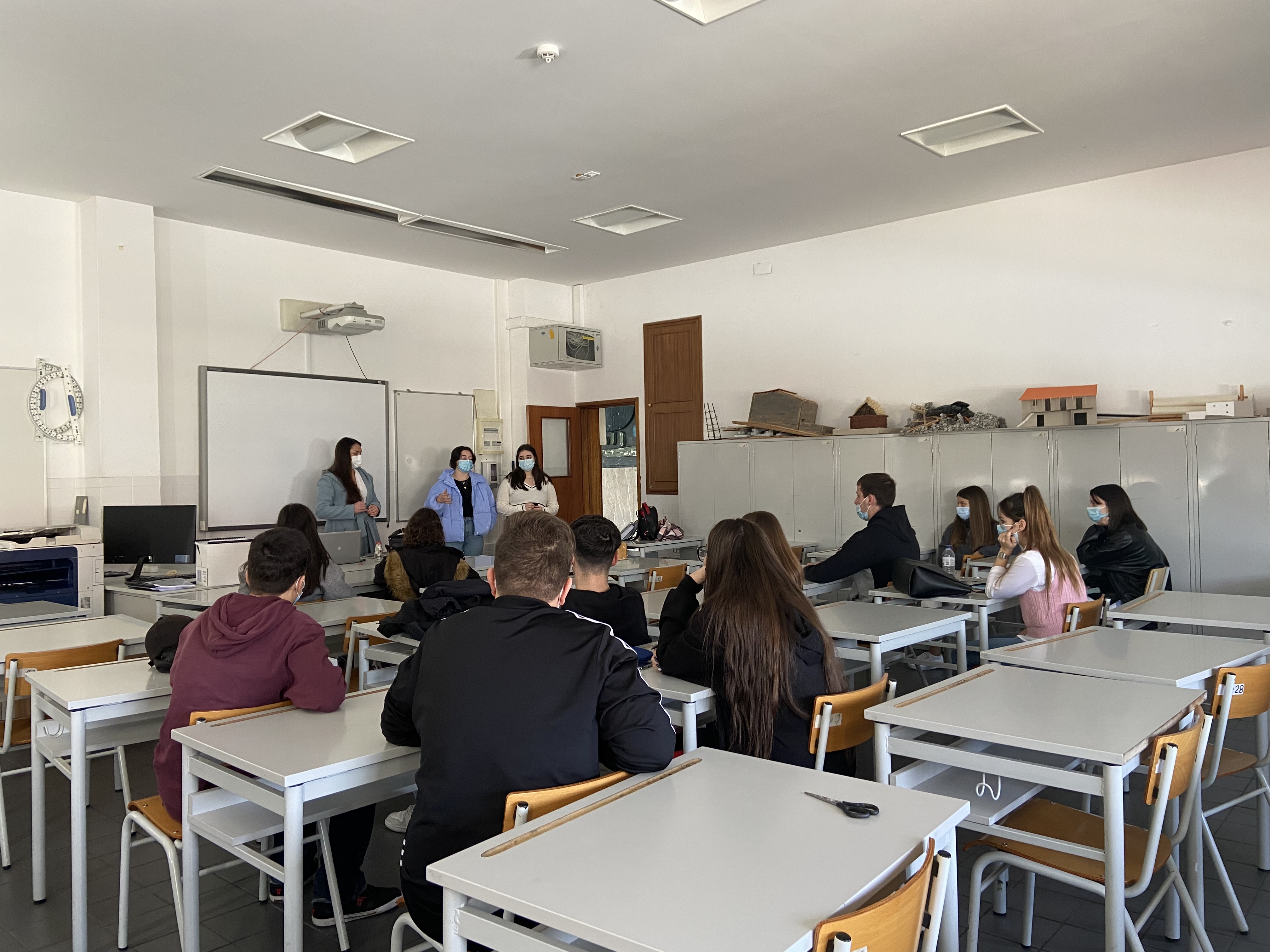 No dia 11 de fevereiro, Beatriz Couto, Inês Soares e Sara Ferreira, antigas alunas do curso de DP-AE, dialogaram com a turma do 12º ano sobre a sua experiência no percurso universitário. Além disso, ilustraram a conversa com trabalhos realizados, sensibilizaram e responderam a questões levantadas pelos nossos alunos, quanto ao futuro e a formação que todos desejam.