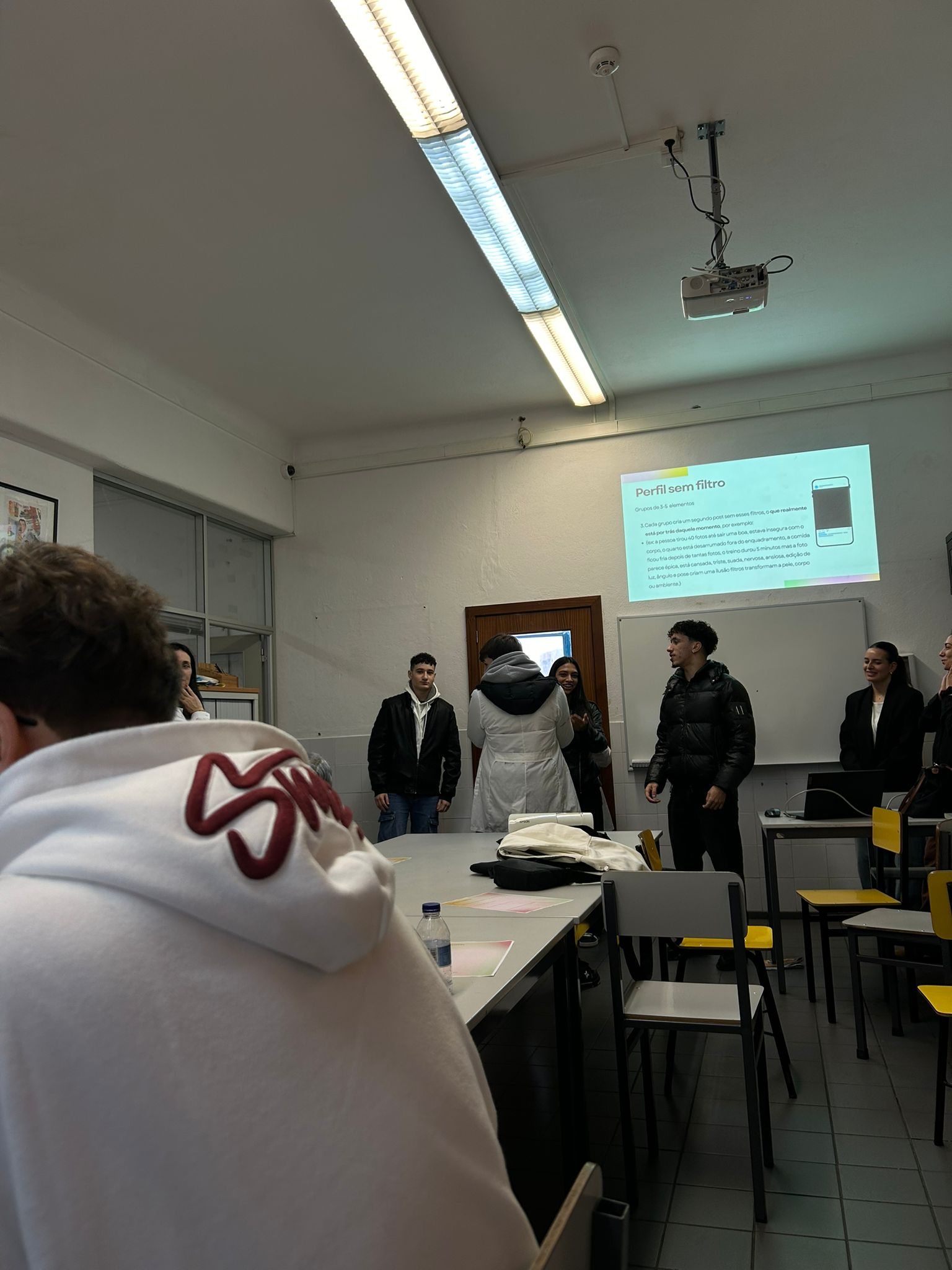Dando continuidade às sessões do projeto “In(corpo)rar”, os alunos de 12 AM refletiram, no dia 18 de fevereiro, sobre o papel das redes sociais na construção de padrões de beleza.